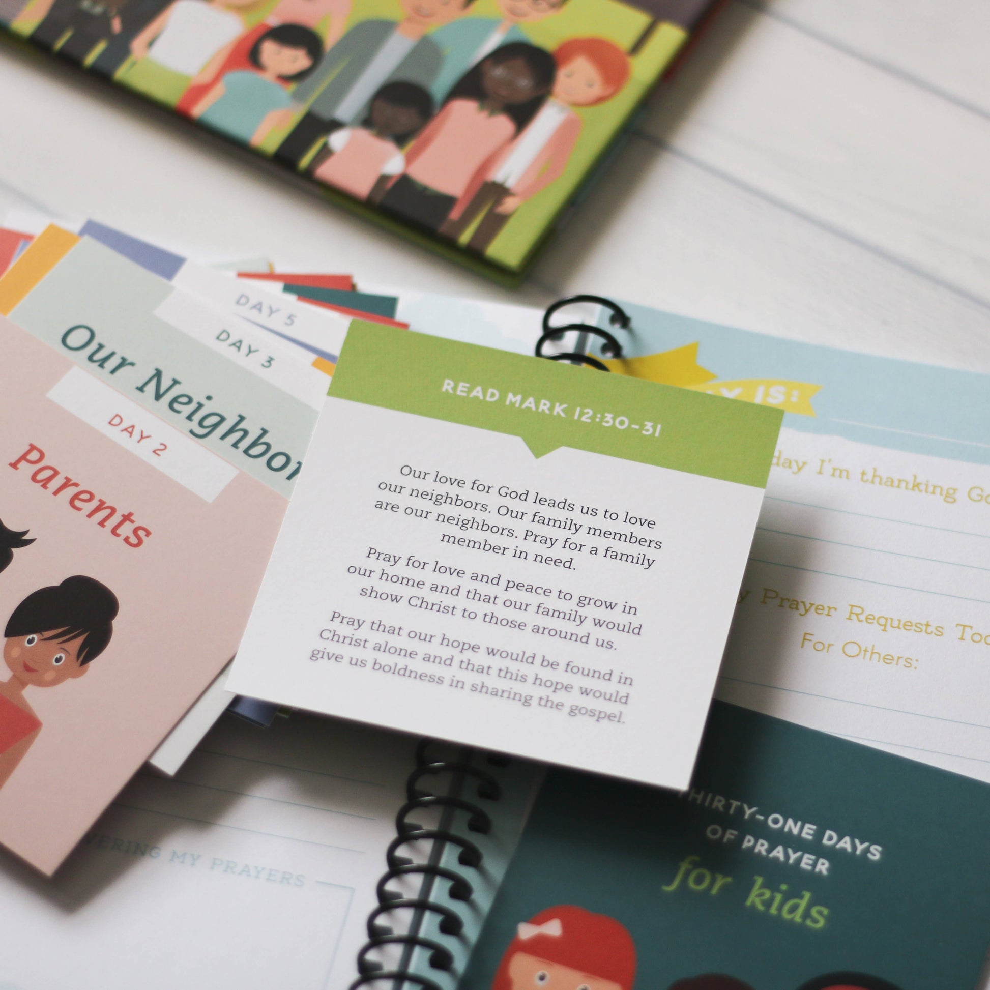 Each card includes a different prayer prompt. These are designed to be used as a tool to prompt prayer throughout the month. Choose one that corresponds with the day of the month and pray for that request.