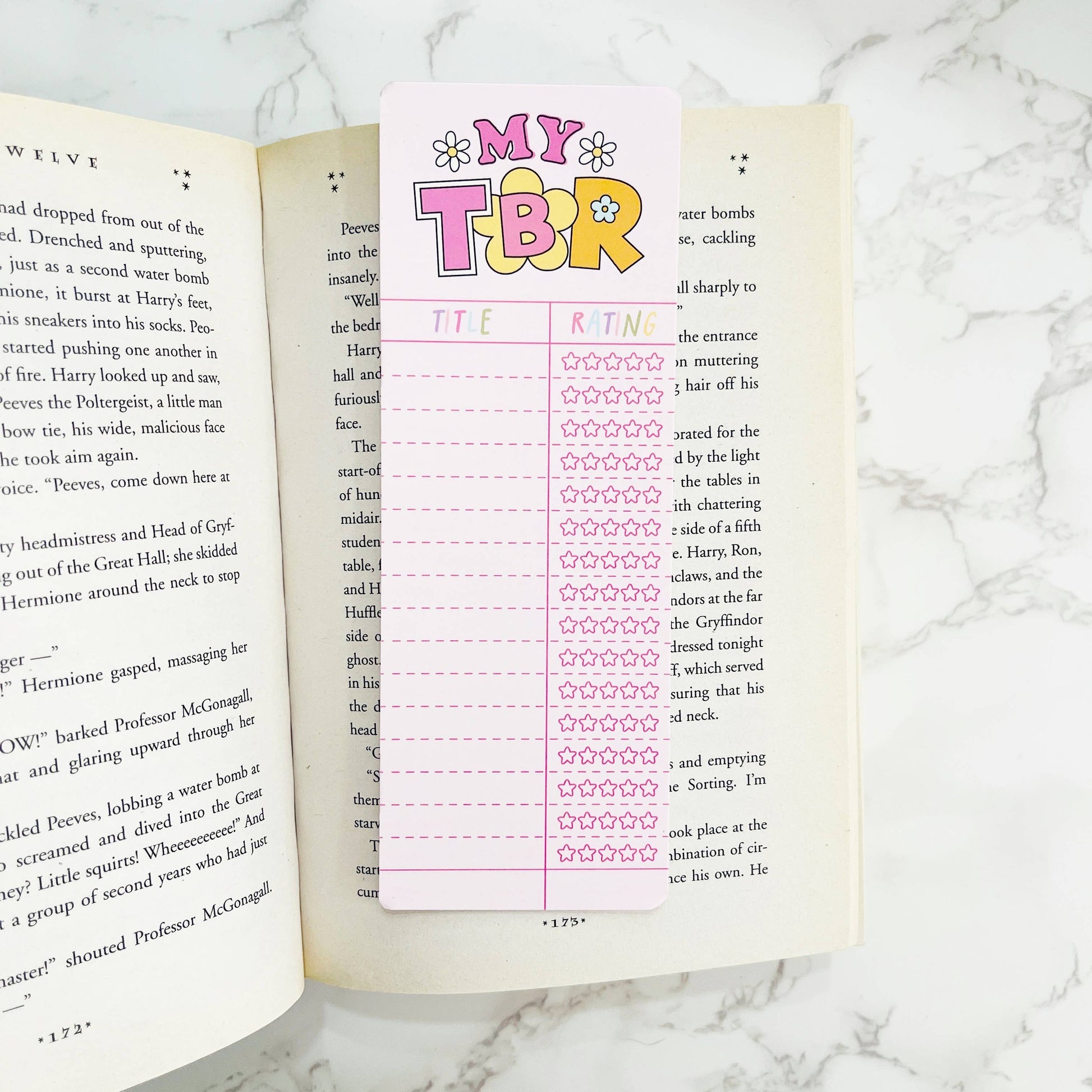 16 pt. matte cardstock bookmark with a writable surface to add your TBR list and ratings. One sided design, back is white. Each bookmark is approx 2.5"x7".