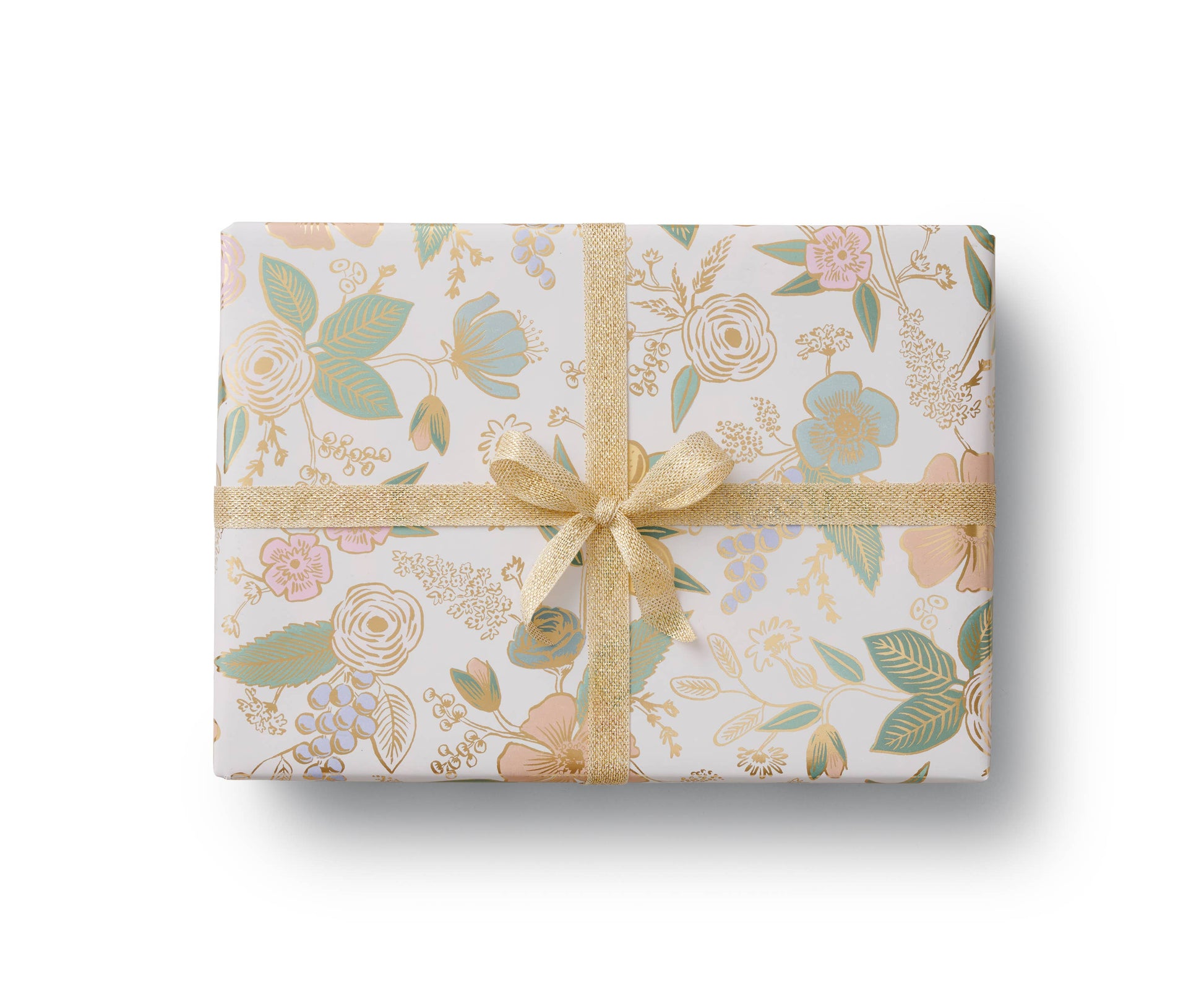 Dress up presents and projects with our wrapping paper rolls, which feature eight feet of paper with colorful illustrations, gold foil accents, and gridlines on the back.