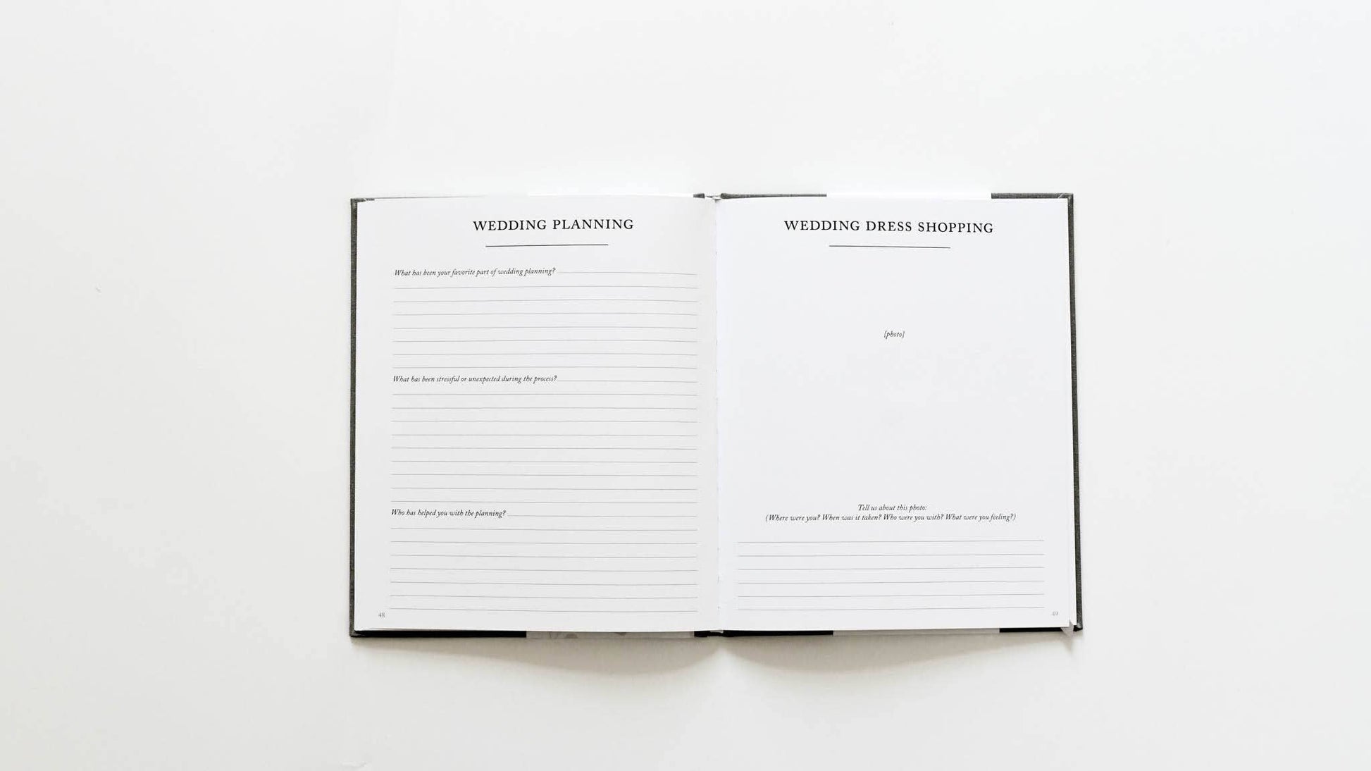 - Wedding Details: A few pages to highlight your wedding planning (dress shopping, showers, people involved, etc.)