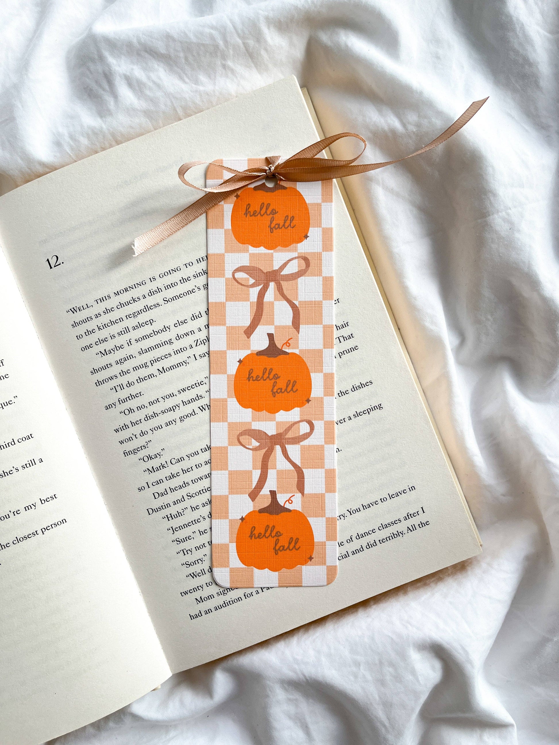 Hello Fall Pumpkin Bookmark | Cute Halloween Bookmark | Coquette Bow Fall: With ribbon