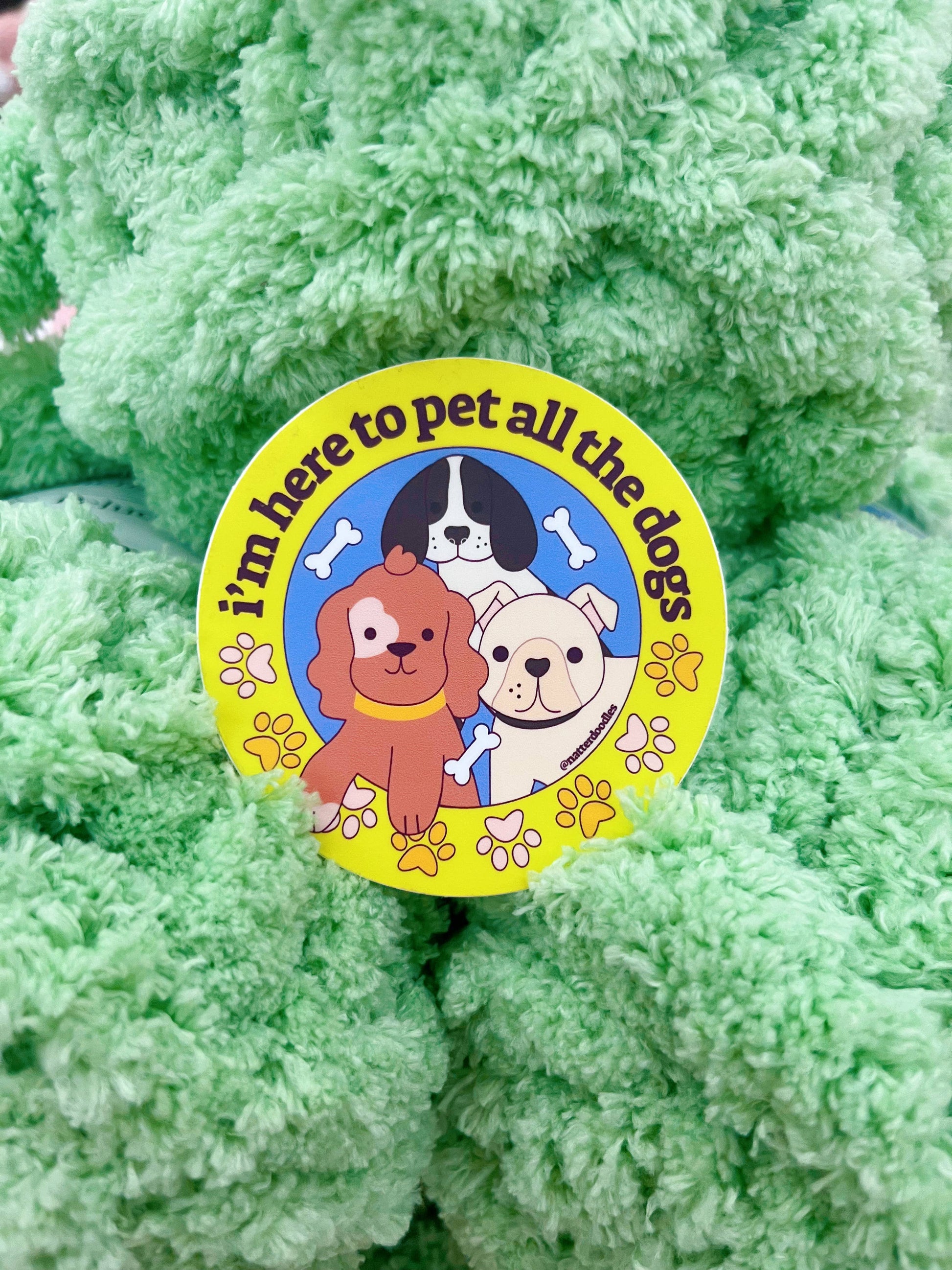 Here to Pet All the Dogs Puppy Pet Store Funny Sticker: Single