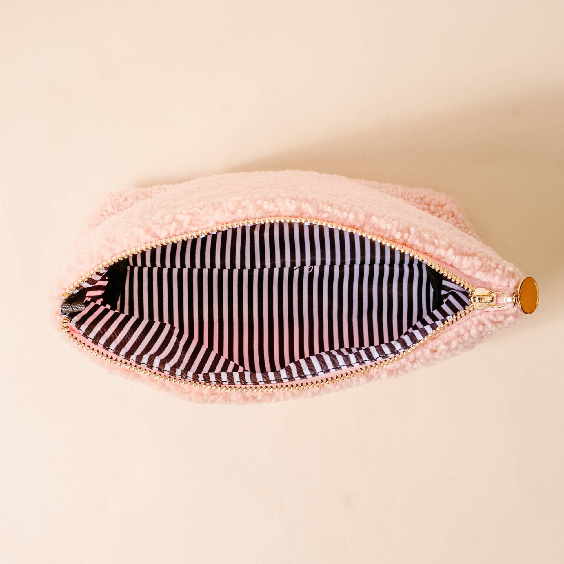 Start off pumpkin season organized with our fall-themed rectangle Teddy Pouches. Made from soft sherpa material, it features a darling, wipeable lining inside and gold zipper details. Plus, it pairs perfectly with our fall circle pouches for added convenience and seasonal style.