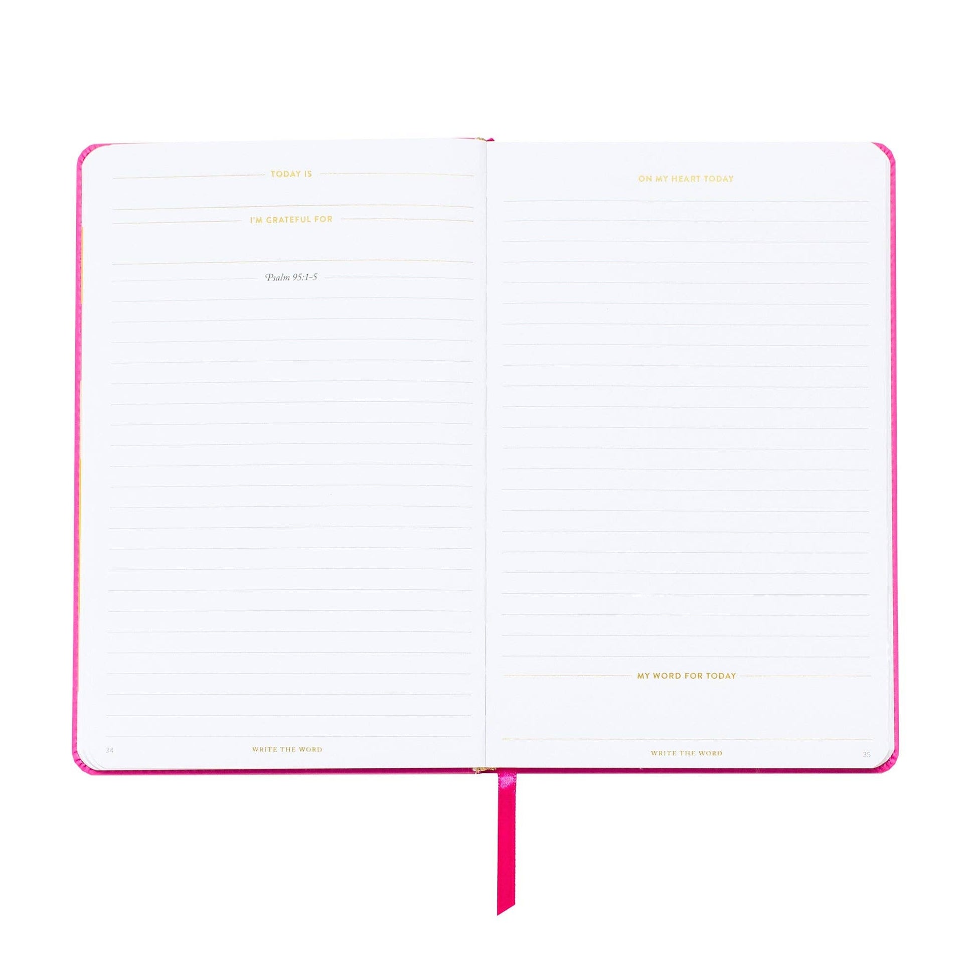 * In each two-page spread, you'll have space to choose a word for the day and journal a prayer, what the day's reading is teaching you, or whatever else is on your heart